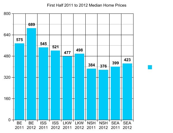 I combined these two so you can see the dramatic difference. Homes Sales in Redmond are being bolstered by the fact that a LOT of new and newer homes are being sold. You may see that change dramatically in 2012 as the builders seem to be shifting over to Sammamish due to the fact that they have used up a lot of the available land in Redmond.